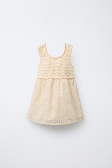 Комбинированное трикотажное платье с вышивкой в швейцарском стиле