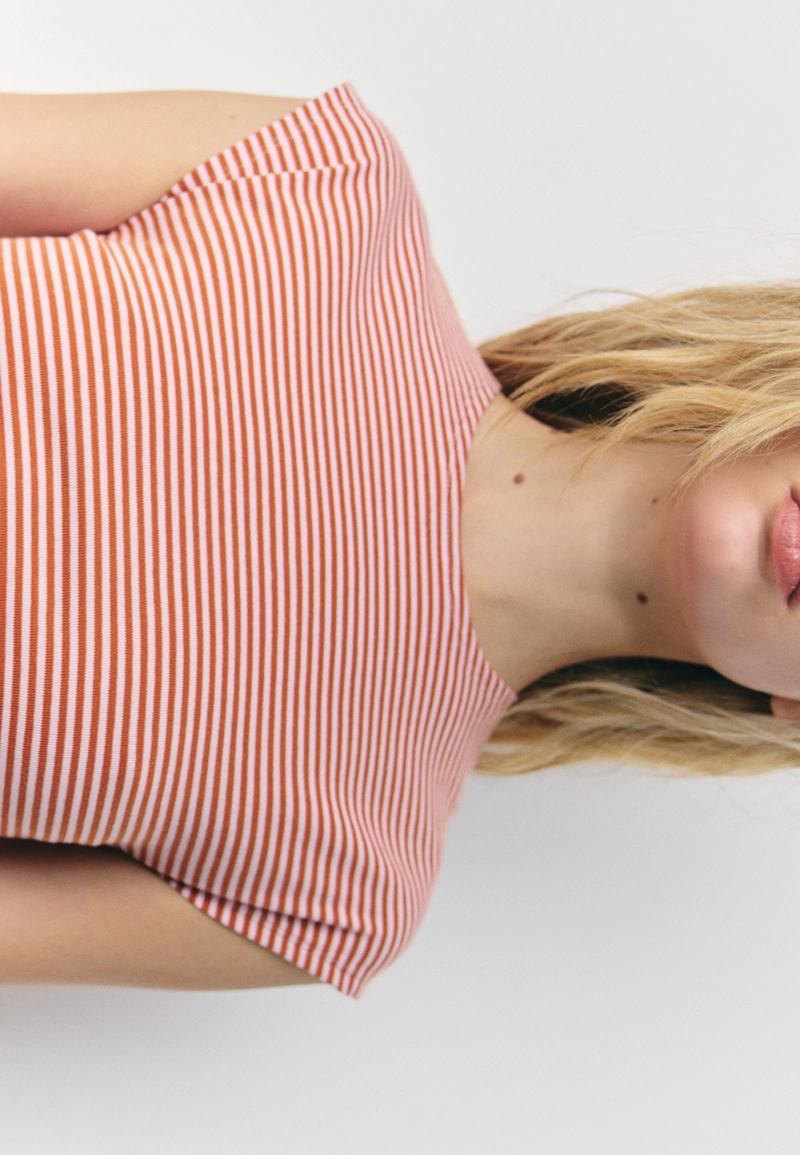 Basic striped mini sleeve Tshirt Salmon pink|6505/577