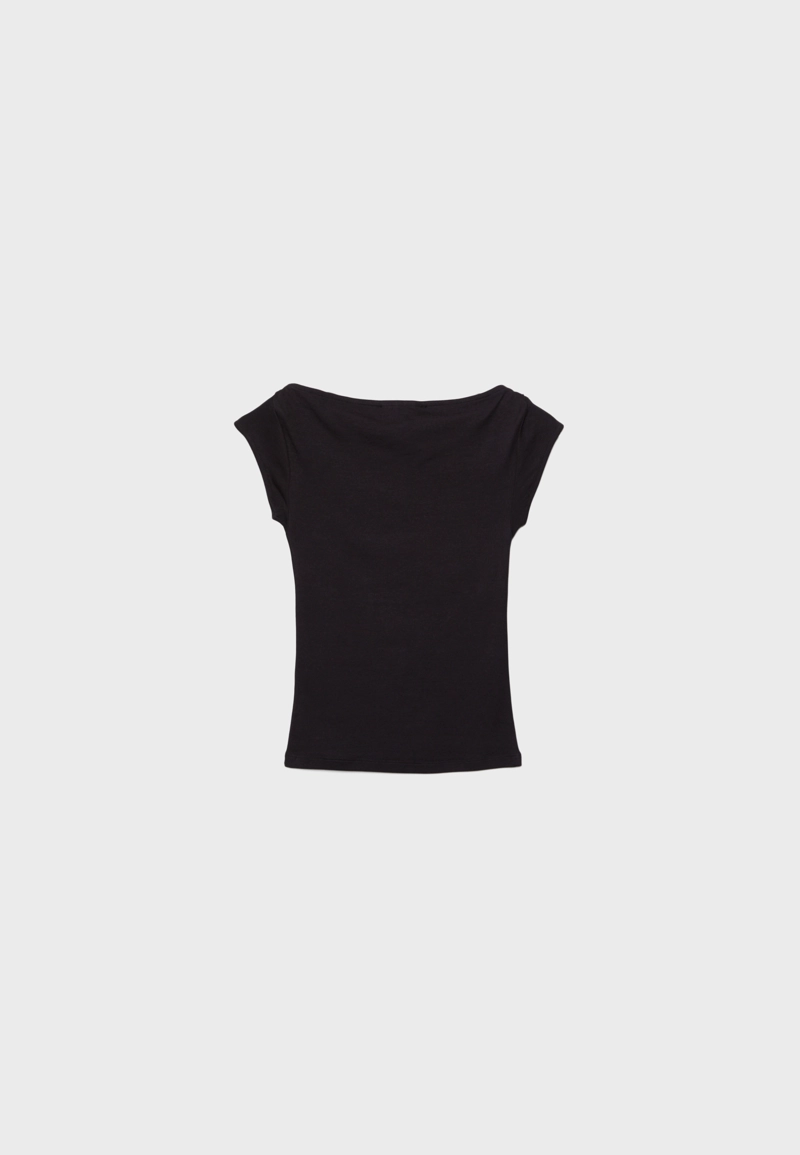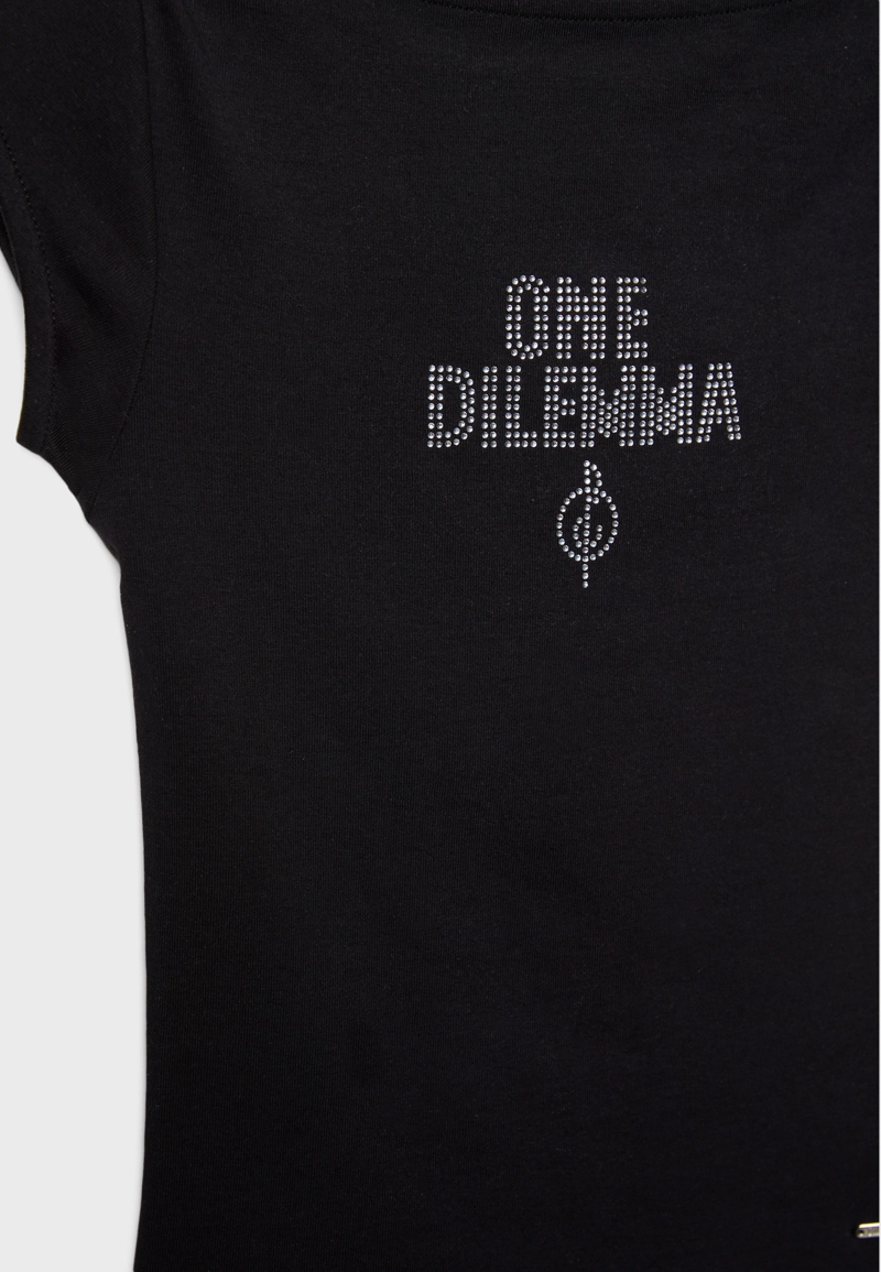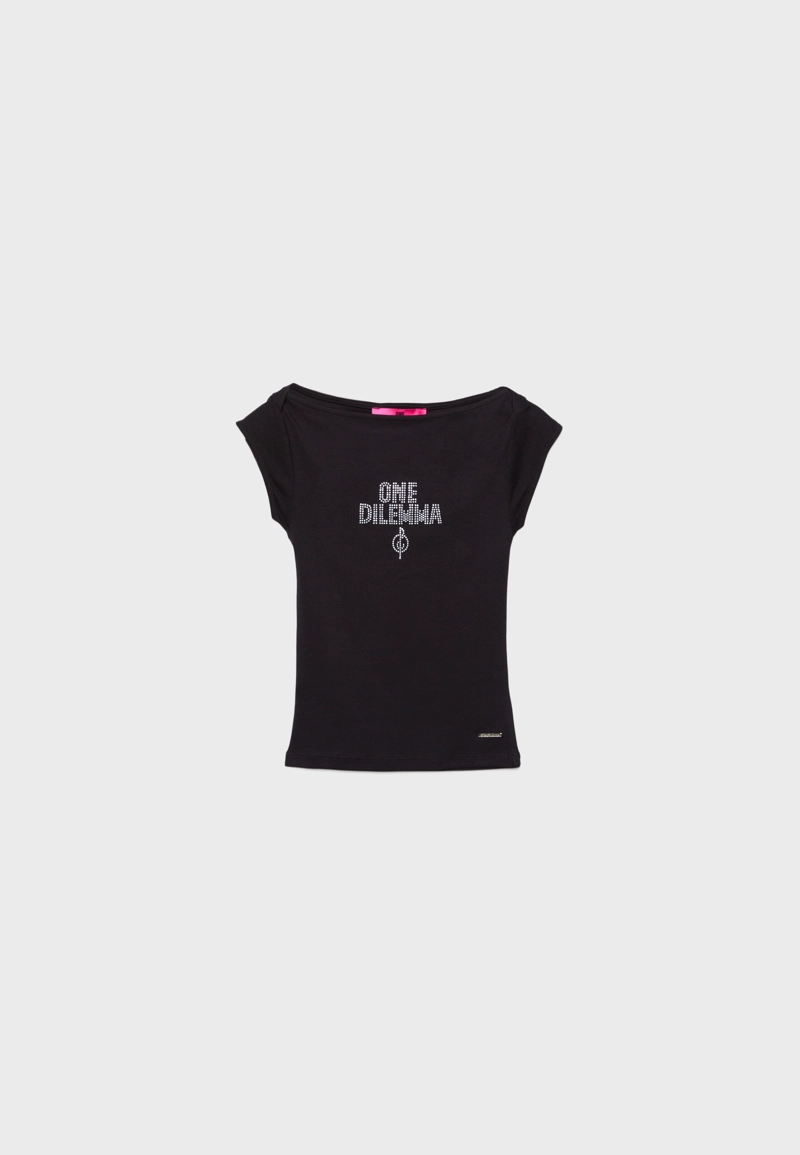 Boat neck short sleeve Tshirt with rhinestones One Dilemma Black|2777/583