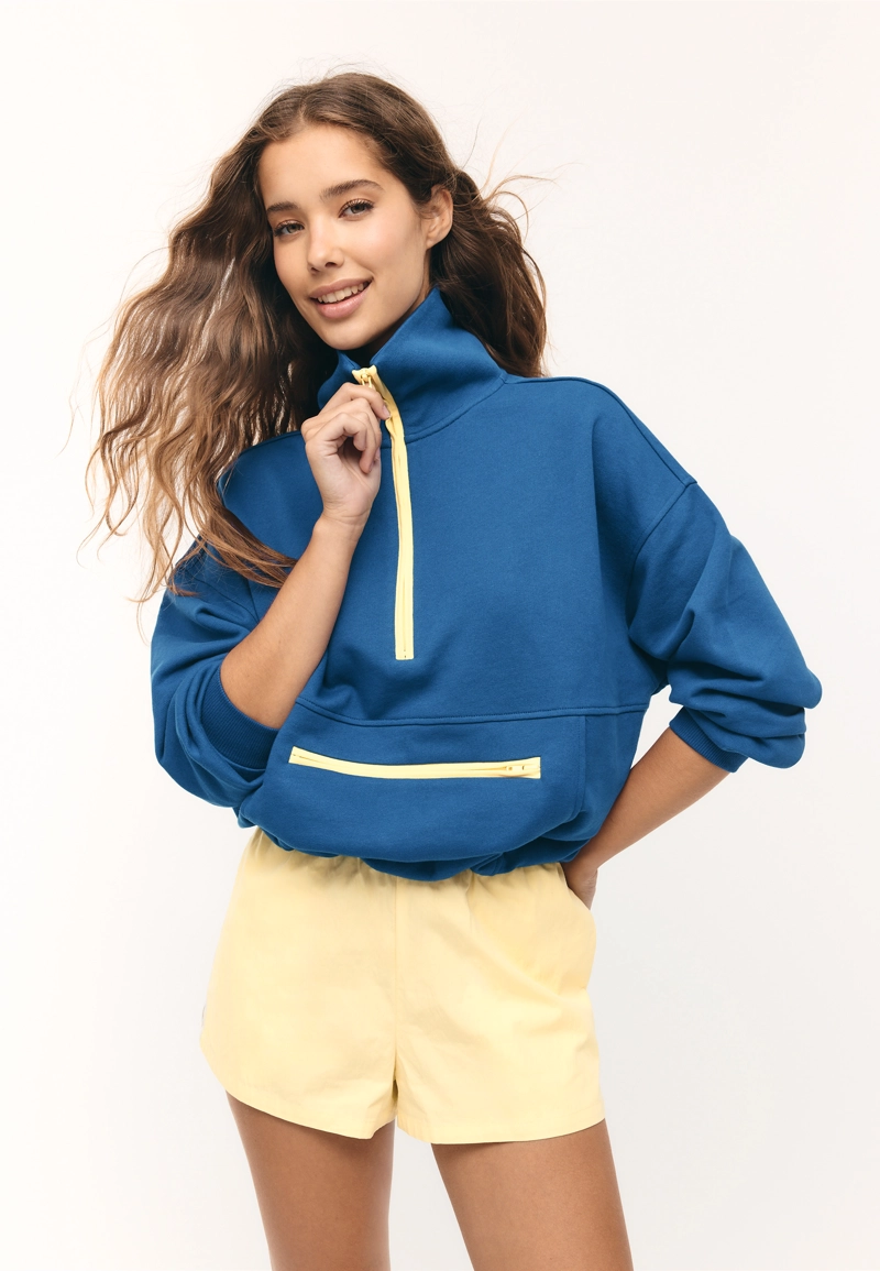 Contrast zip sweatshirt Royal blue|7697/674