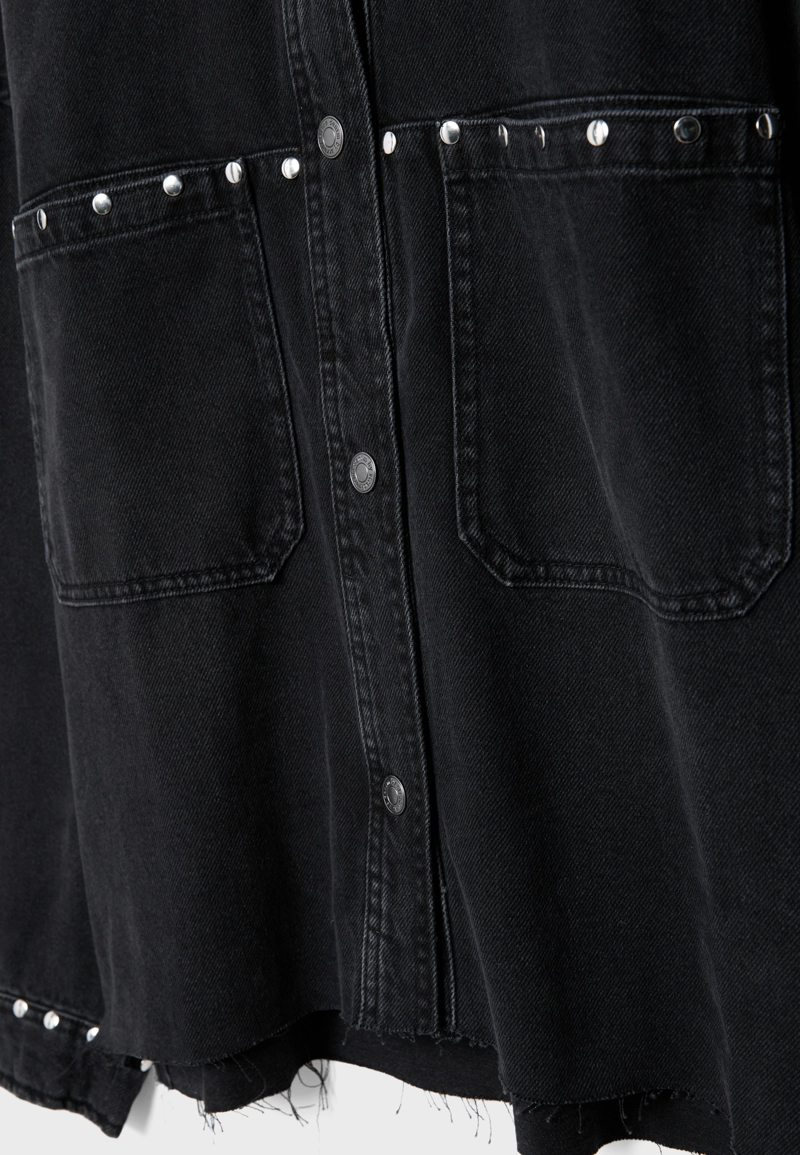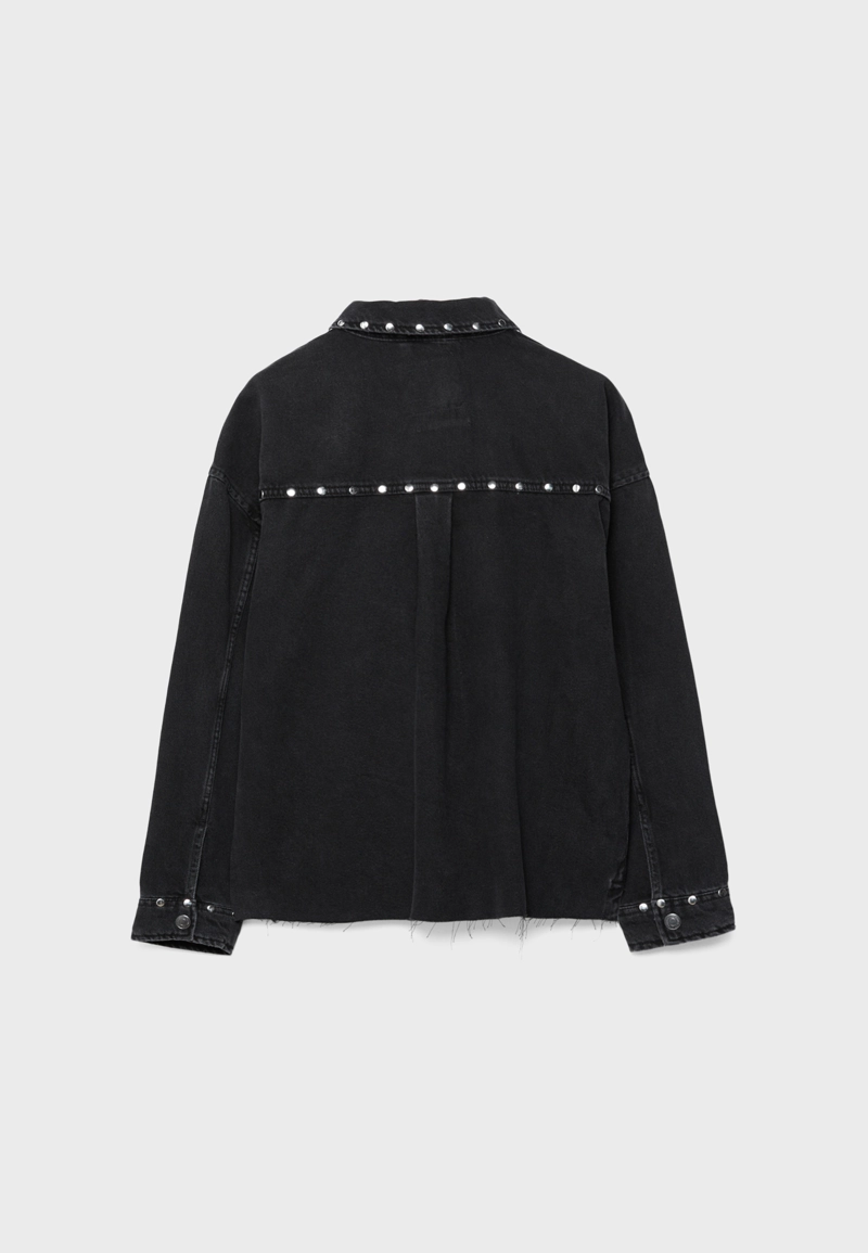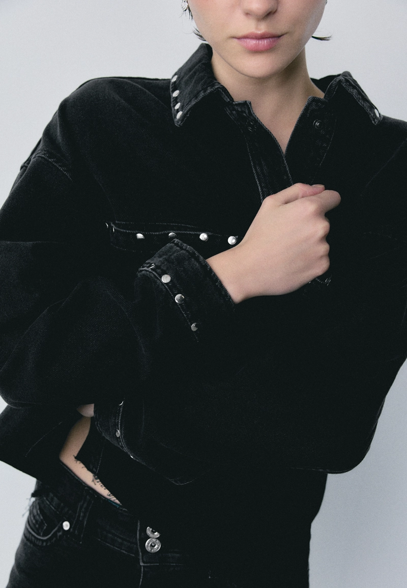 Cropped studded denim overshirt BLACK DENIM WASH|1740/600