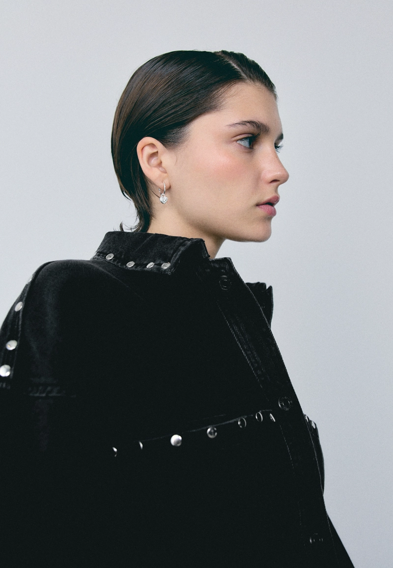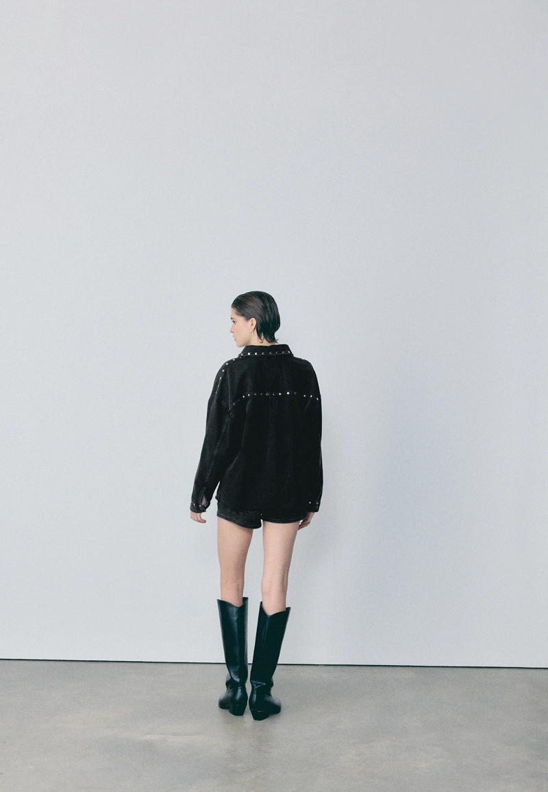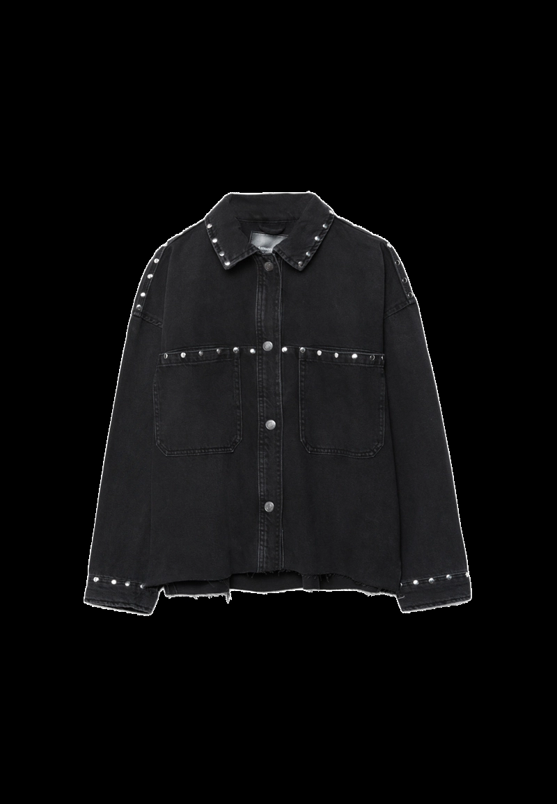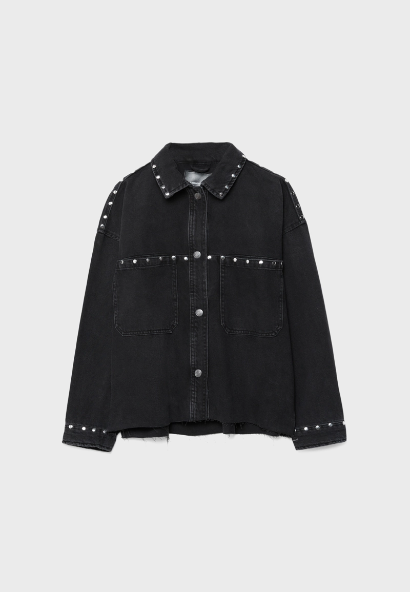 Cropped studded denim overshirt BLACK DENIM WASH|1740/600