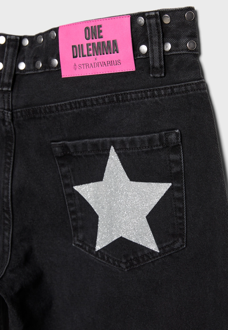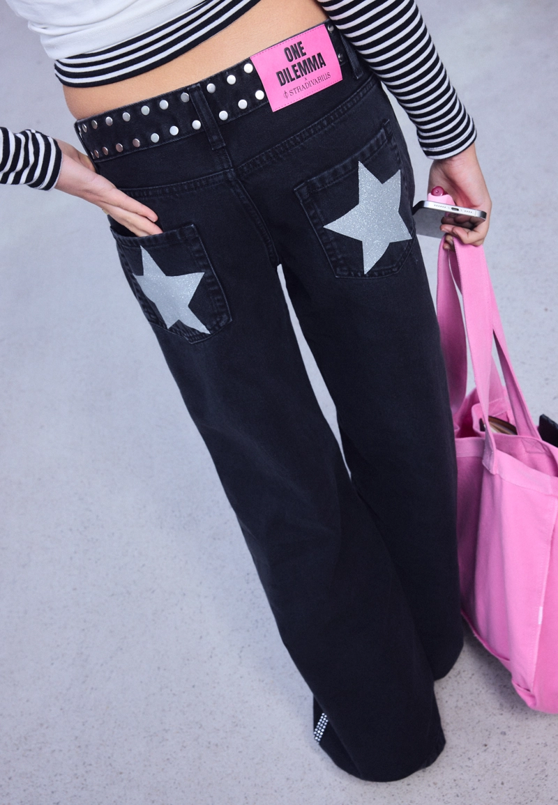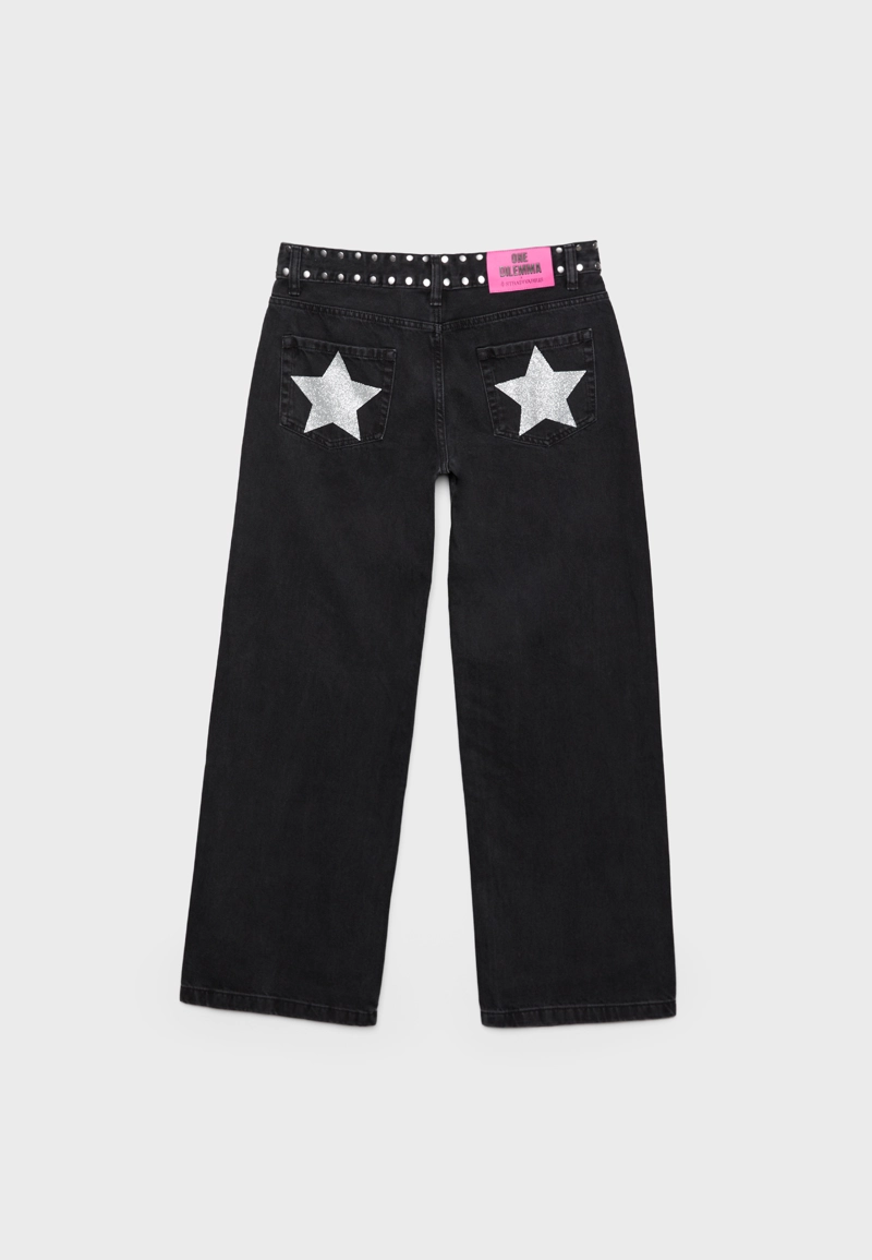 Jeans low waist straight studs One Dilemma BLACK DENIM WASH|1404/869